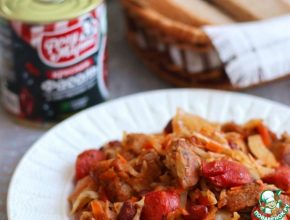 Одно из самых простых и самых домашних блюд. Категория: Горячие блюда Блюда из мяса Горячие блюда из говядины Ингредиенты для «Тушёная капуста с мясом и колбасками»:
