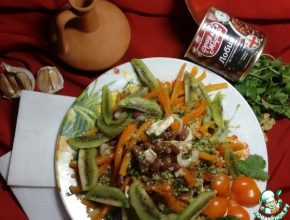 Очень ароматный, сочный, свежий, нетривиального вкуса салат с ароматной фасолью "Лобио" от "Фрау Марта". Сладость киви чудесно подчеркивает традиционные грузинские специи. Для сытности добавлено куриное филе, для яркости — сладкий …